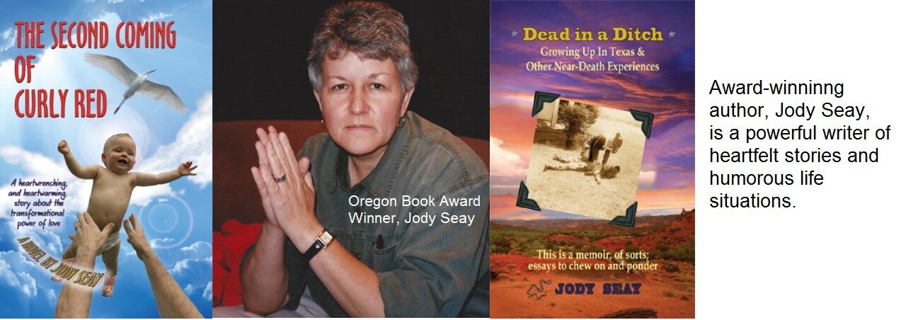 Her writing is a combination of tender, funny, and common sense. It reflects the humor and wisdom of fellow Texan, Molly Ivins, shaken together with the type of yarns spun by American populist, Will Rogers. Jody Seay has always believed in the power of stories to change our world. Jody says, “I do see myself as grounded, intelligent, funny, outspoken, and liberal. My writing reflects those characteristics along with a touch of tenderness, which I think touches people’s hearts. If I can write a story that makes people laugh and cry, then that makes me a happy girl. Indeed, if I can write a story that breaks my own heart and I still feel good at the end of it, I know I’ve put another one over the center field wall.” Jody now lives in Oregon with her partner, their sweet little dog and a mean cat.